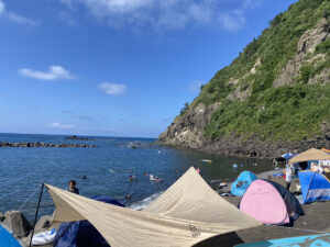 本当なら青空綺麗で楽しい海水浴なのになあ・・・。