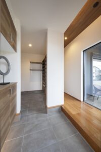 室内干しスペースを設け、ファミリークローゼットなど収納スペースを隣接させる間取りも人気です。