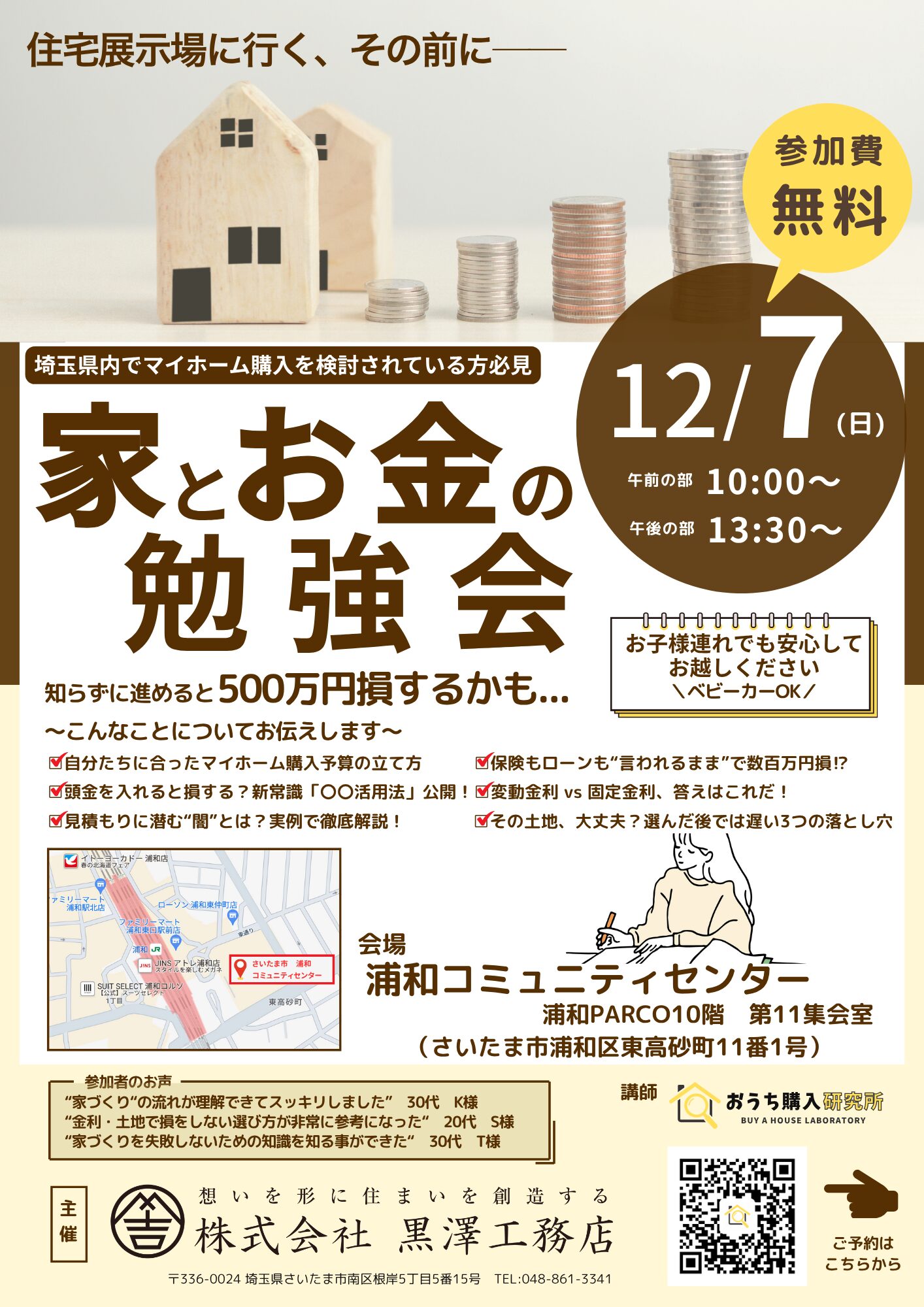 安心してお家づくりを進めていただくために「家とお金の勉強会」を開催いたします。