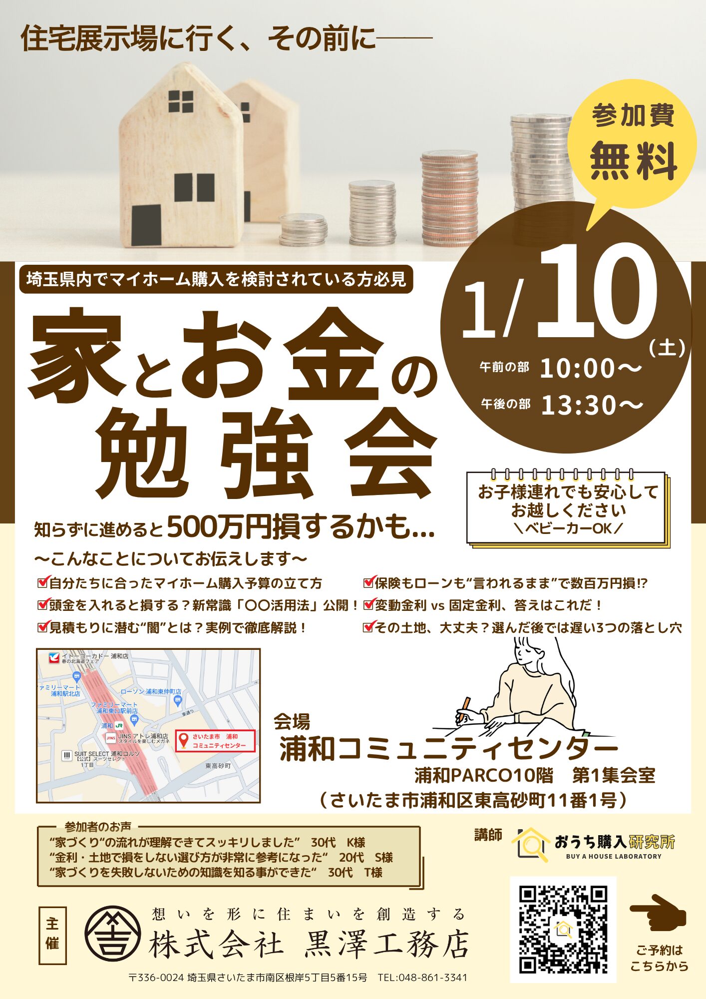 そこで、住宅購入や新築注文住宅をご検討中の皆様へ向けて「家とお金の勉強会」を開催いたします!