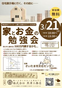 そこで黒澤工務店では、ご好評いただいている「家とお金の勉強会」を開催いたします。