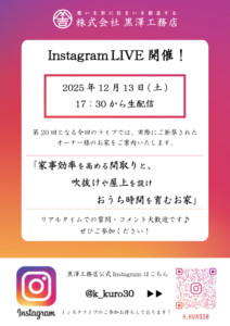黒澤工務店、第20回インスタライブを開催させていただきます。