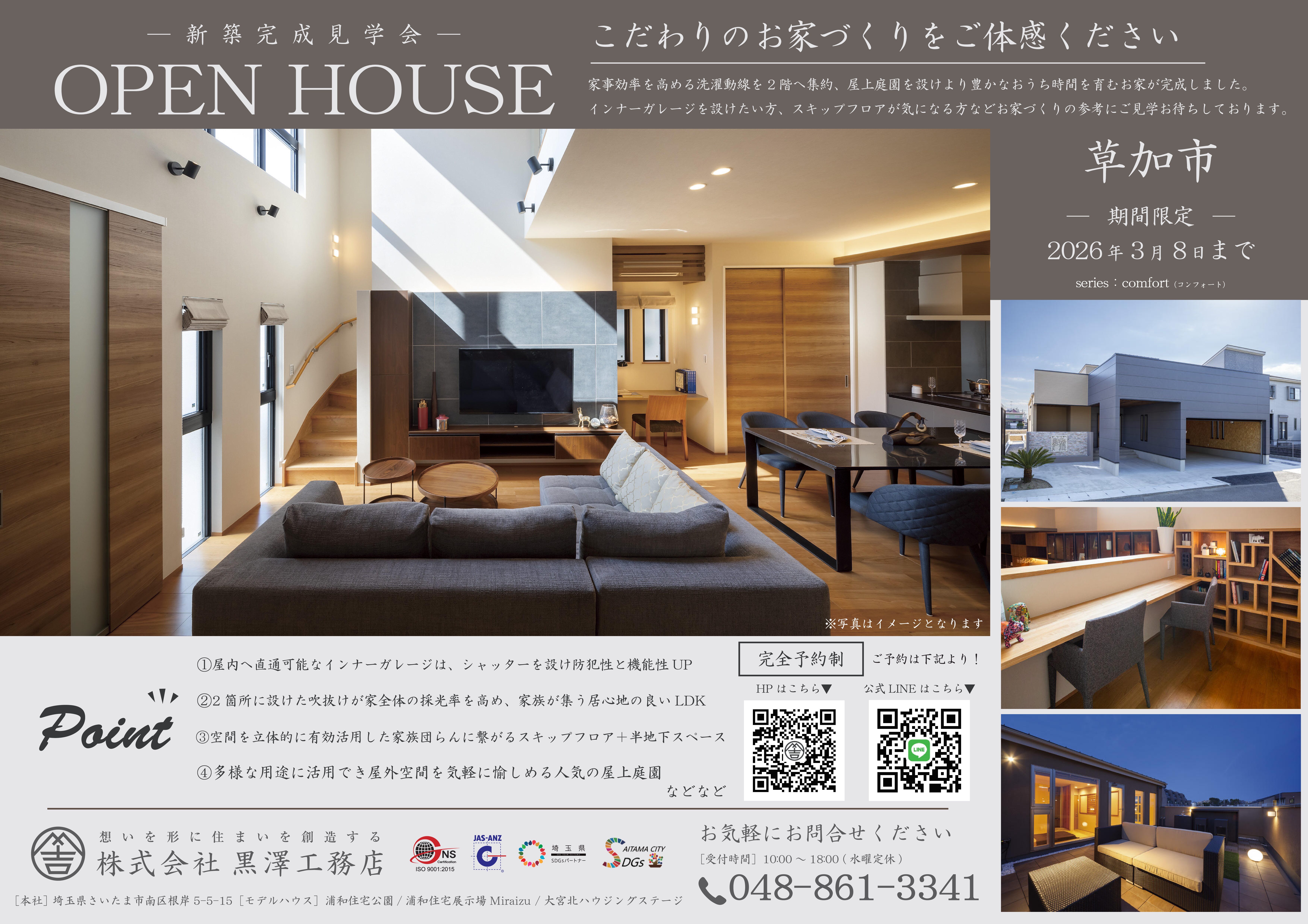 黒澤工務店のリアルサイズのお家をご体感いただける、「期間限定OPEN HOUSE」が新たに誕生しました!